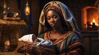 Mary as a dark-skinned African with Baby Jesus Landscape 3