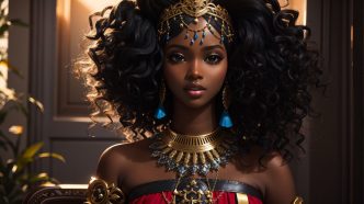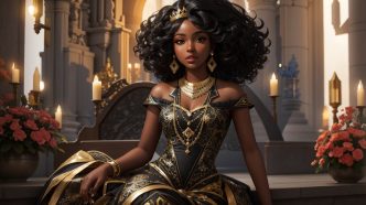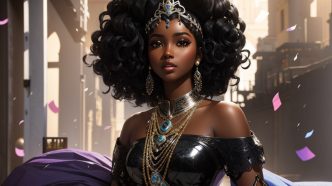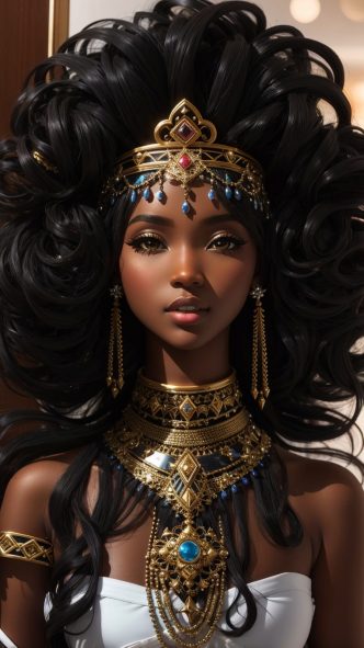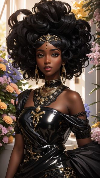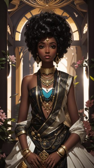 Beautiful ebony princess as a stained glass window in yellow landscape 4