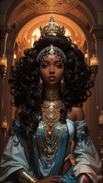 Beautiful ebony princess as a stained glass window in turquoise portrait 3