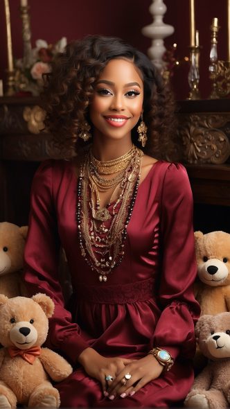 Beautiful African-American princess surrounded by teddybears Portrait 6