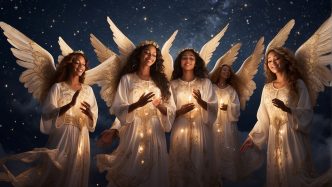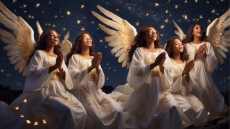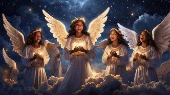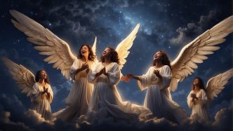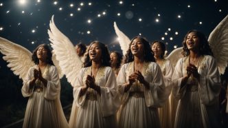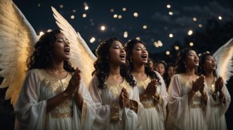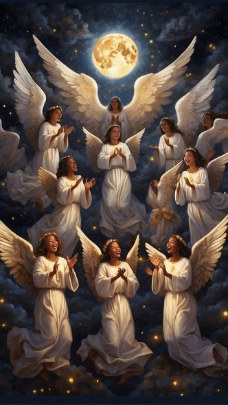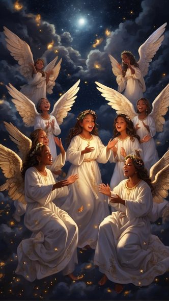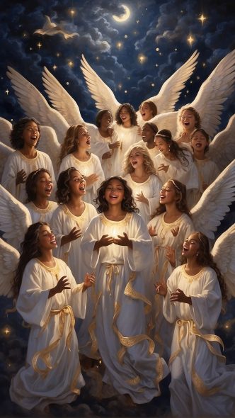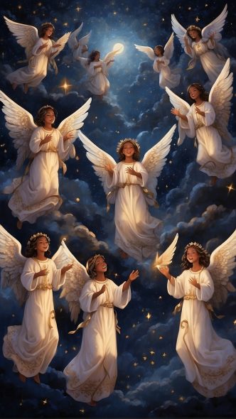 Photorealistic Middle-Eastern Christmas angels singing in the night sky landscape 7