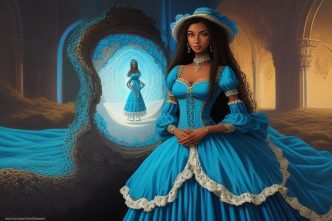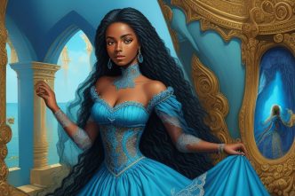 A futuristic afro princess with elaborately plaited hair and an afro highlighted in glowing blue 1