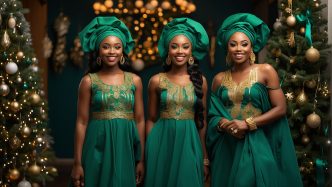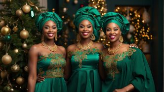 Beautiful ebony princess as a stained glass window in green landscape 4